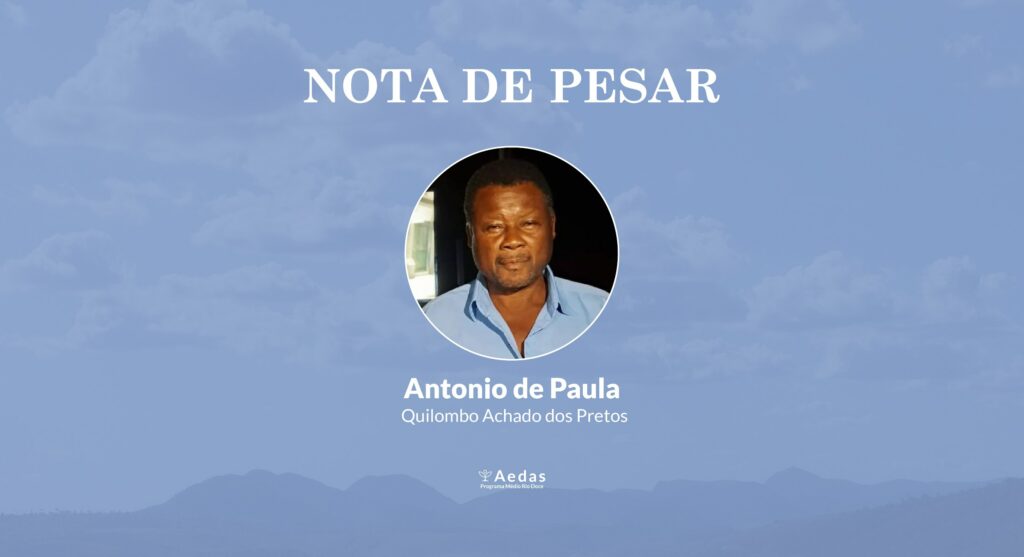 É com profundo pesar que a equipe do Programa Médio Rio Doce da Associação Estadual de Defesa Ambiental e Social (Aedas) recebeu a notícia da passagem do senhor Antonio de Paula, uma referência no Quilombo Achado dos Pretos.