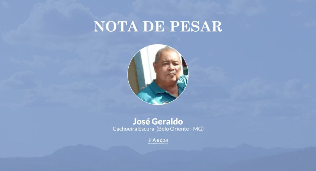 O Programa Médio Rio Doce da Aedas manifesta seu pesar com o falecimento de José Geraldo, ocorrido em 22 de dezembro de 2024. Nascido em 24 de agosto de 1956, José Geraldo foi membro do Grupo de Atingidos e Atingidas (GAA) do Centro, em Cachoeira Escura.