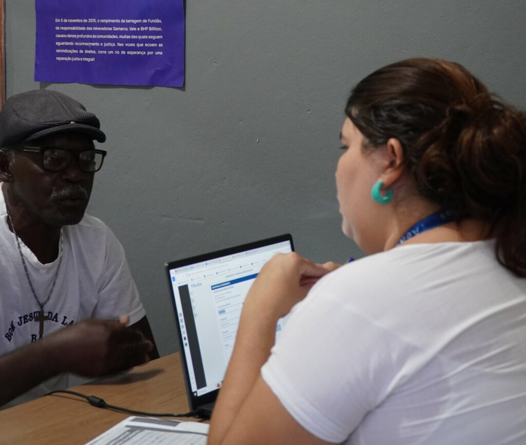 Desde dezembro, os técnicos e técnicas do Programa Médio Rio Doce da Aedas vêm realizando atendimentos individuais nos territórios atingidos, com o objetivo de mapear as principais dúvidas e orientar as comunidades sobre a nova etapa do processo de reparação. O novo acordo definiu como pré-requisitos de acesso ao Programa de Transferência de Renda (PTR): o Cadastro Nacional da Agricultura Familiar (CAF) para os atingidos agricultores; e Registro Geral da Atividade Pesqueira (RGP) para os pescadores atingidos.