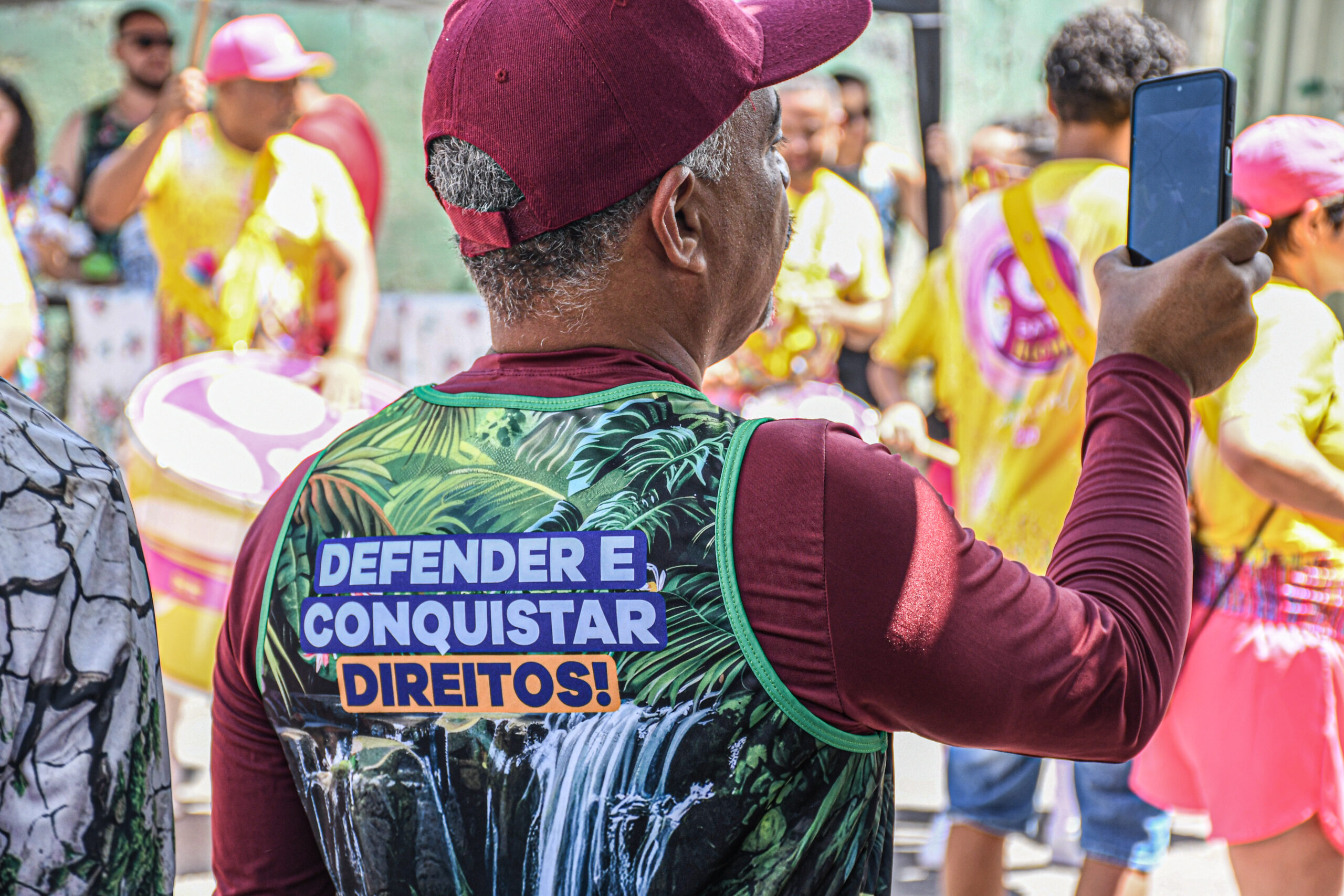O bloco Cueca do Avesso também contou com a participação de alas que reforçaram pautas sociais e trabalhistas, como o SindUTE, o Sindicato Único dos Trabalhadores em Educação de Minas Gerais.