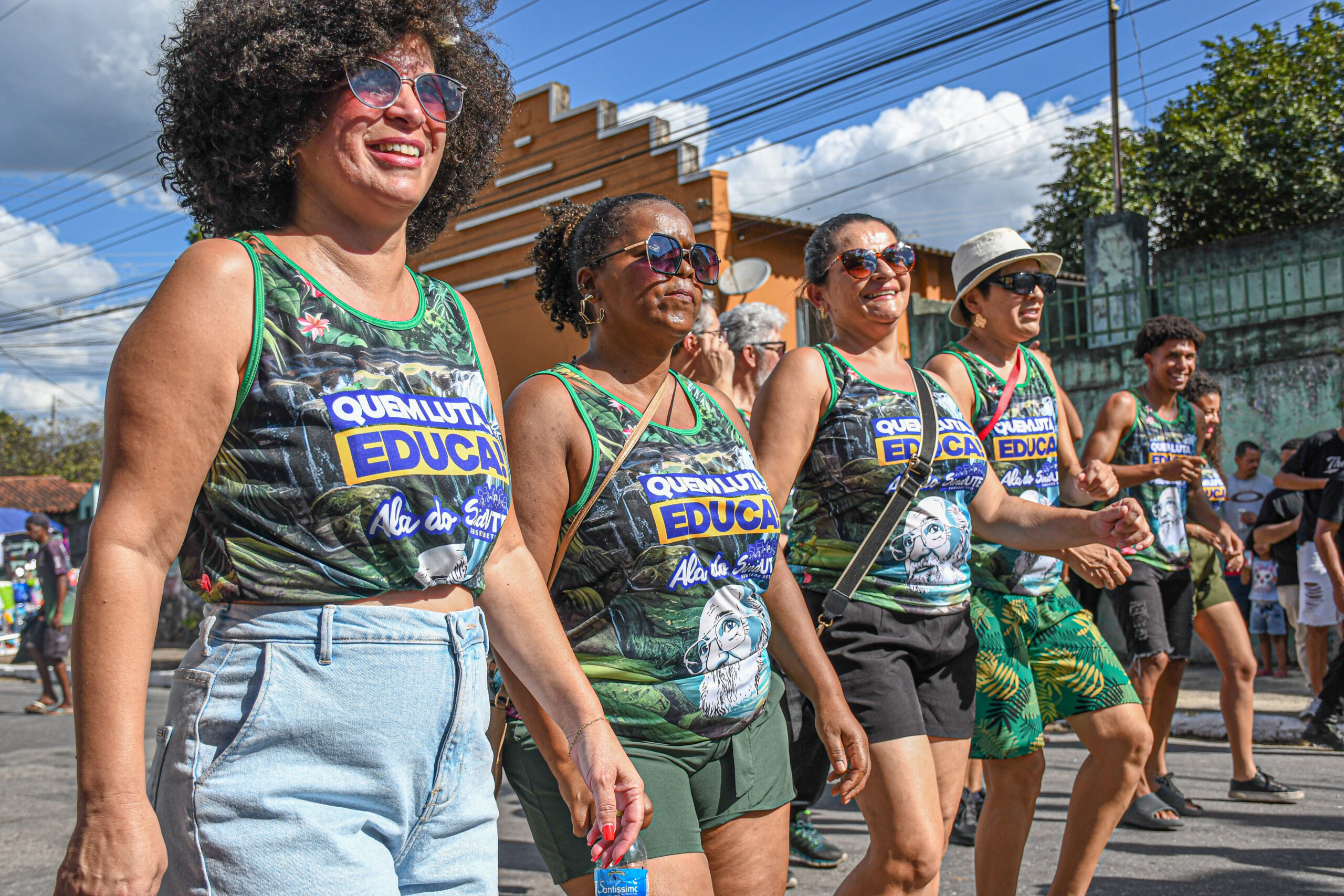 Segundo Ana Paula Ribeiro, da Regional Imbiruçu, da comunidade do Jardim Perla e diretora do SindUTE, “É a terceira vez que acompanhamos o Bloco. É um bloco que se aproxima muito do povo, da classe trabalhadora. Nós, do SindUTE, fomos convidados a participar com uma ala da Educação. Nossa ala se chama ‘Quem Luta Educa’, porque defendemos a luta por uma educação pública de qualidade. Nosso patrono é Paulo Freire. O tema deste ano é a nossa pauta de luta para 2025: ‘Defender e conquistar direitos’.”
