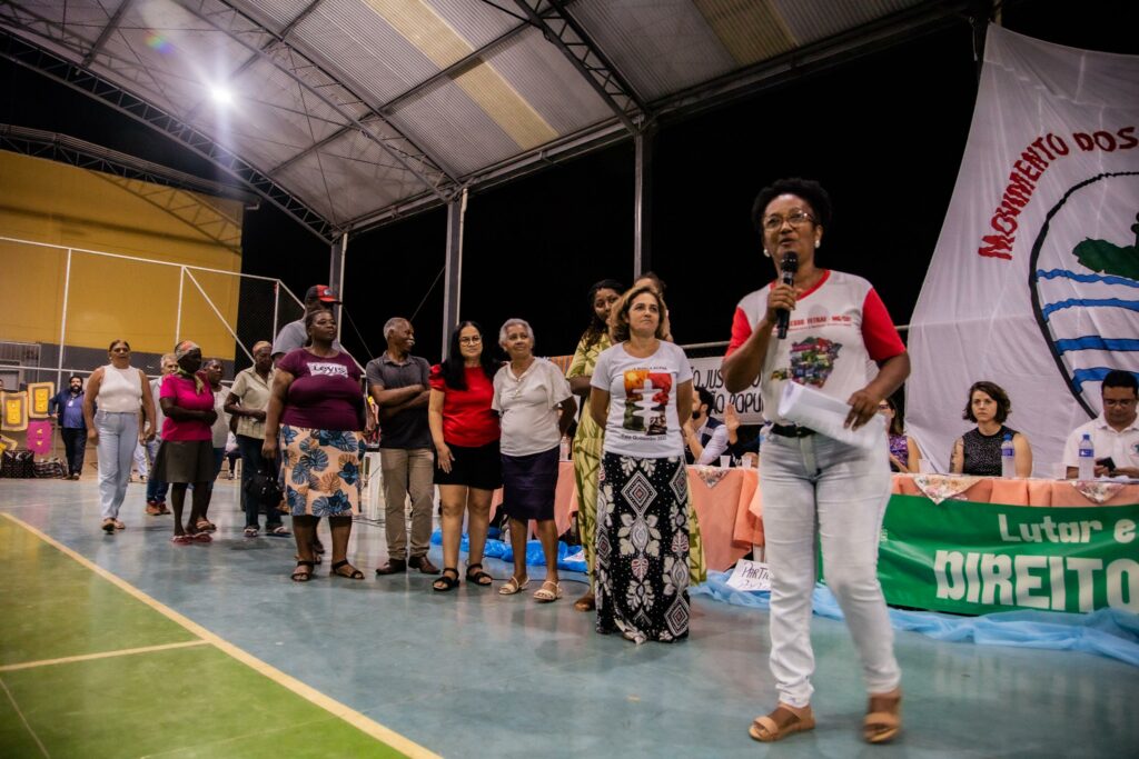Em um momento de união e simbolismo, os representantes das comunidades quilombolas se reuniram para uma fala conjunta, dando as boas-vindas aos membros do governo federal e demais presentes. Com vozes firmes e alinhadas, reivindicaram o reconhecimento dos seus territórios e destacaram a urgência da reparação justa para as comunidades tradicionais. Antes de entregarem a carta manifesto, pediram um minuto de silêncio para a bênção dos presentes, em um gesto de boa-fé e esperança, reafirmando a importância do respeito às tradições e à espiritualidade quilombola no processo de reconstrução de suas vidas.