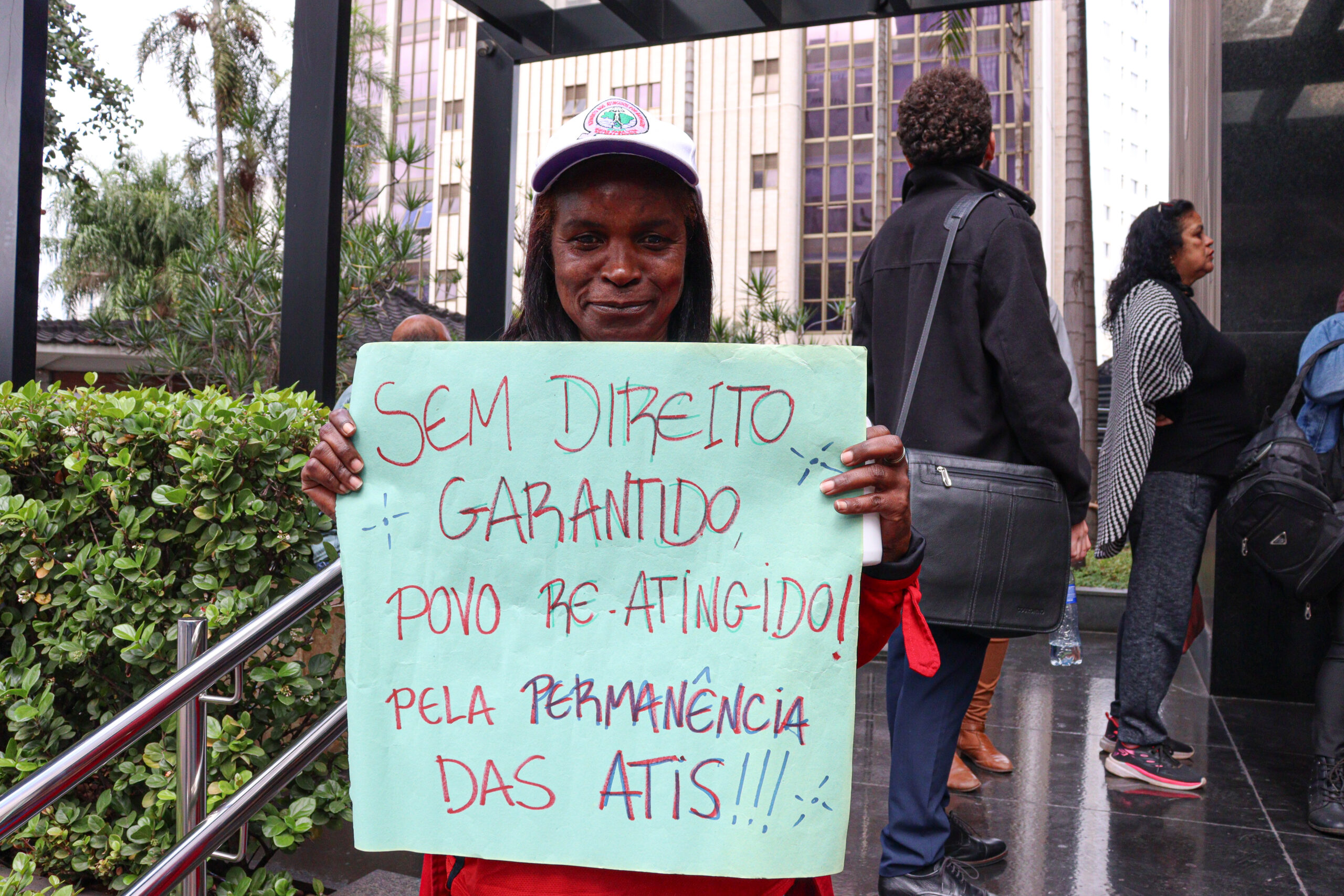 Sueli Araújo, liderança atingida da comunidade dos Pires, em Brumadinho, estava presente no ato e comentou sobre a importância das ATIs na luta das pessoas atingidas por reparação: “A falta da ATI em nossas comunidades é uma perda muito grande. Tudo o que precisamos resolver em questão da justiça, reuniões, acompanhamentos, a ATI está junto com a gente — seja em audiências, seja com a Vale, tudo isso a ATI é muito importante. Então, a falta dela vai nos prejudicar no processo de reparação”.