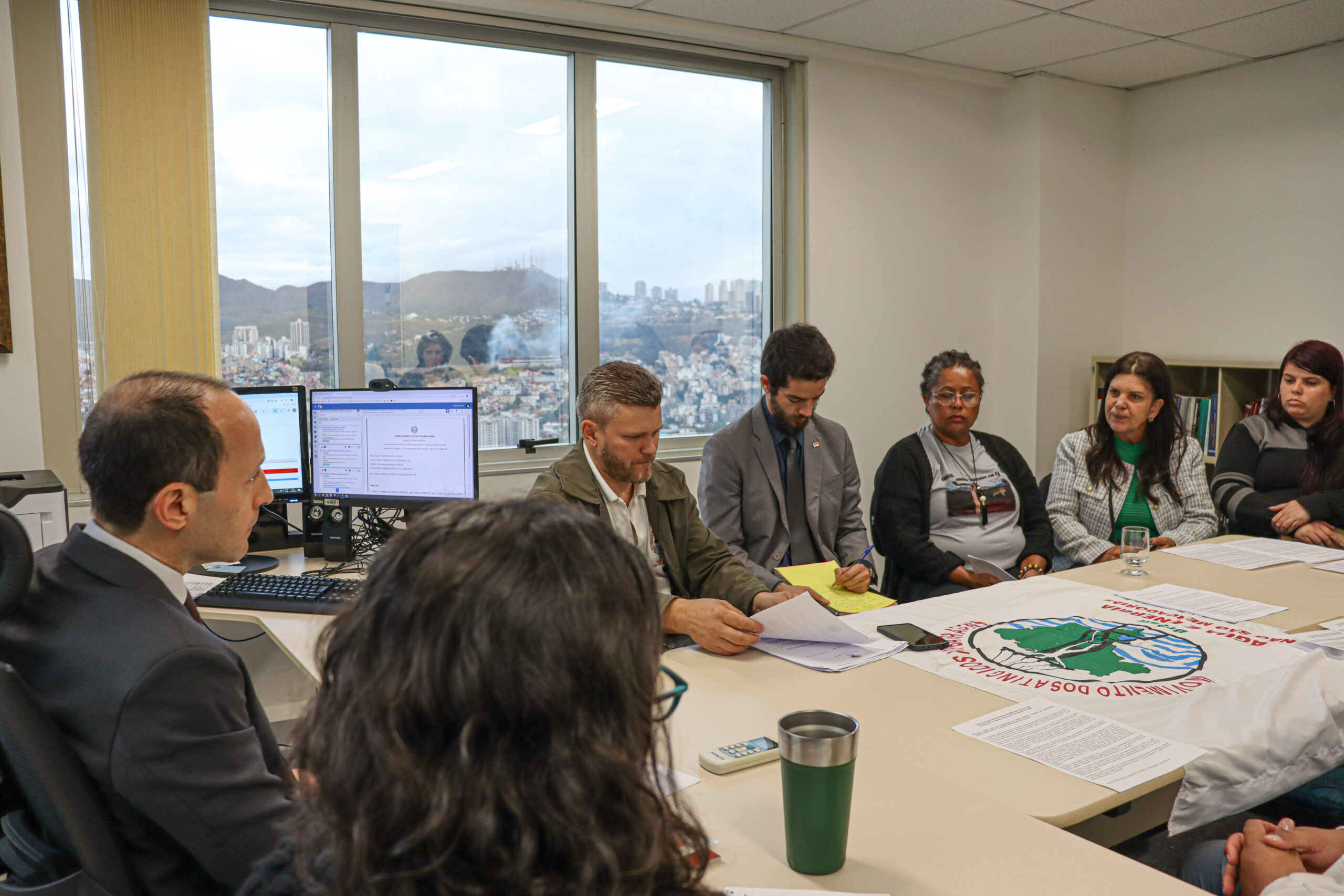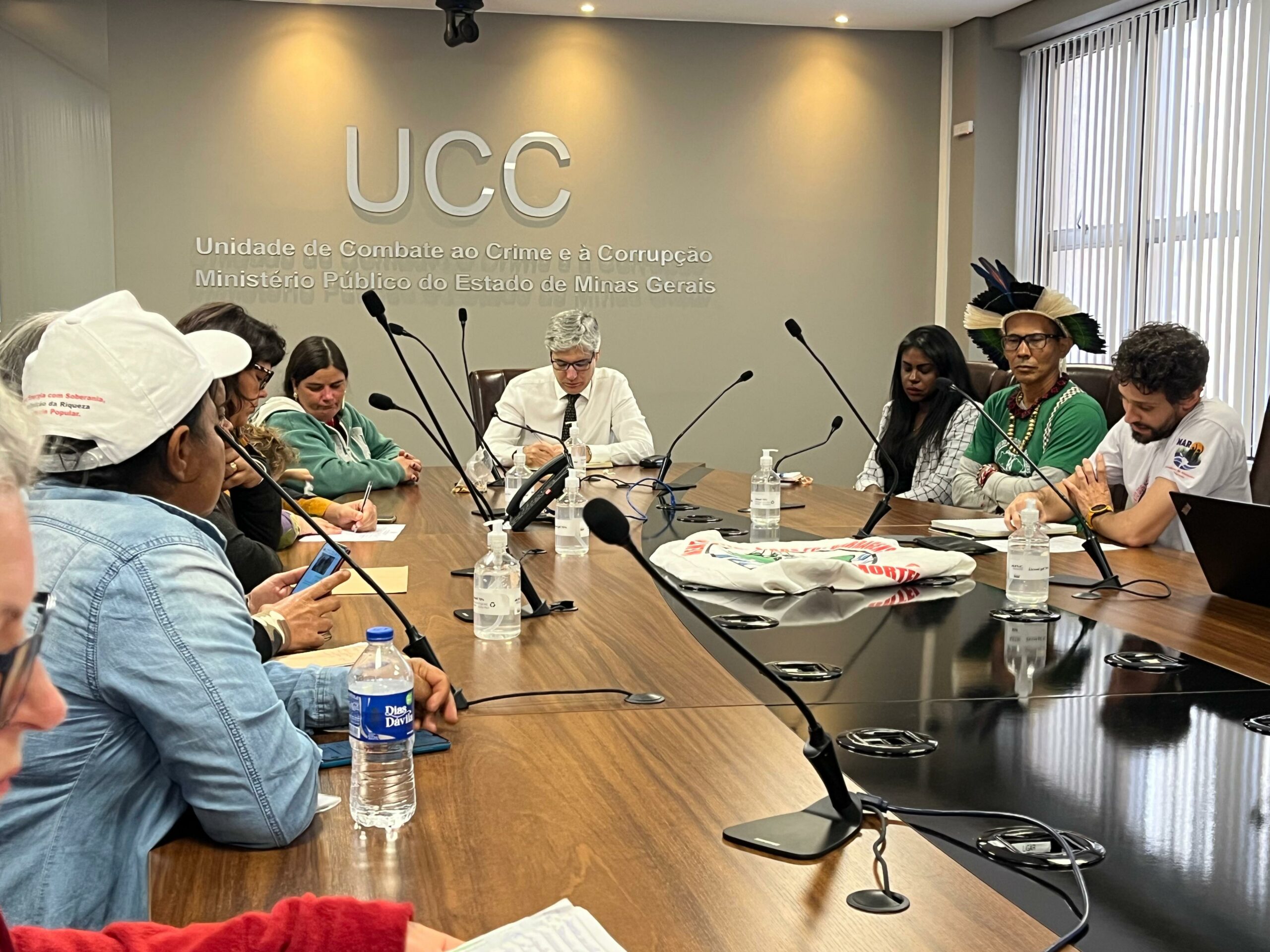Após o ato, as pessoas atingidas retornaram ao INCRA para o almoço e, à tarde, seguiram para o Ministério Público de Minas Gerais, onde participaram de uma reunião com o Núcleo de Acompanhamento de Reparações por Desastres (NUCARD), presidida pelo promotor Leonardo Castro Maia e realizaram nova manifestação em defesa do Anexo I.1.