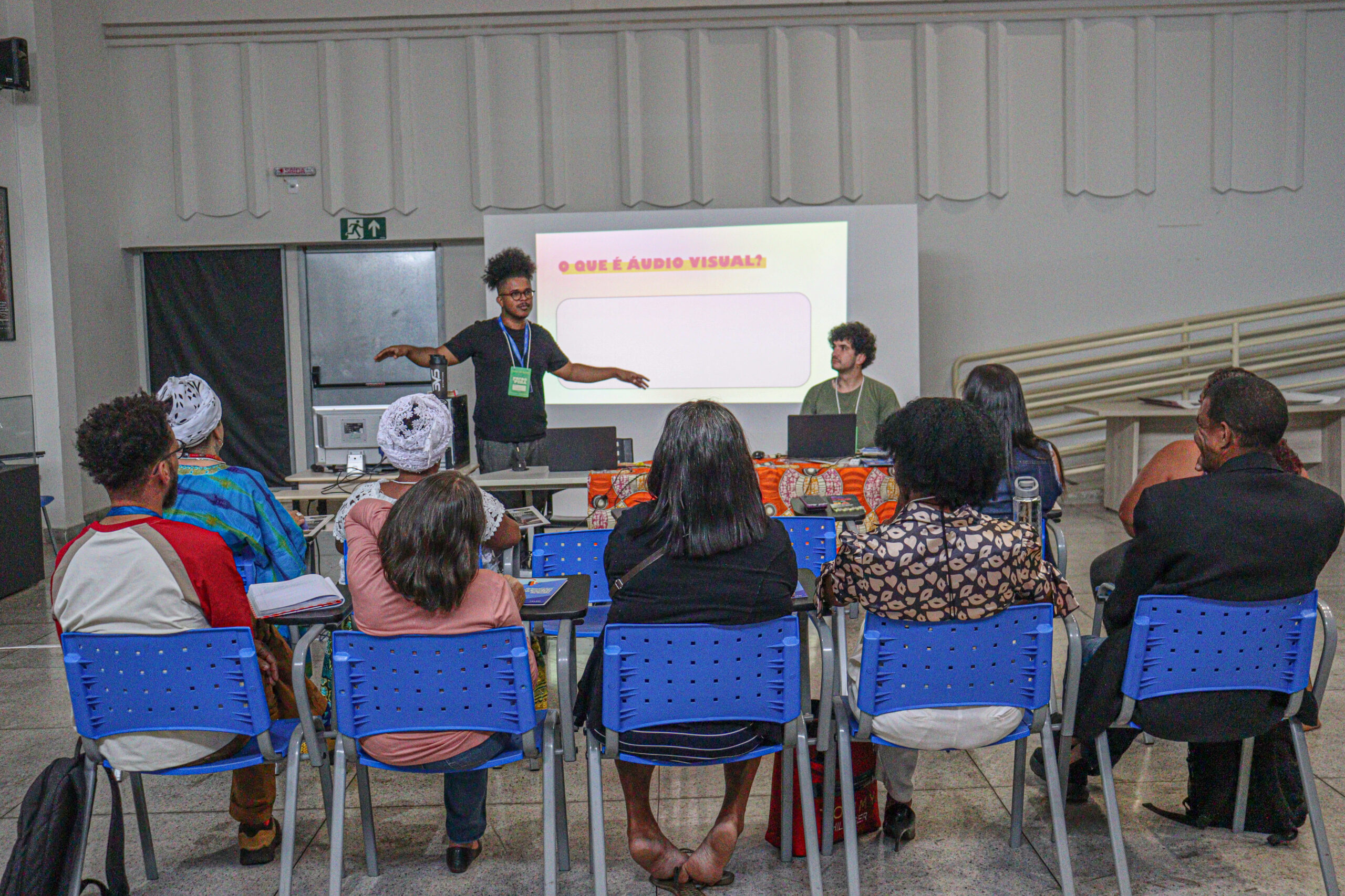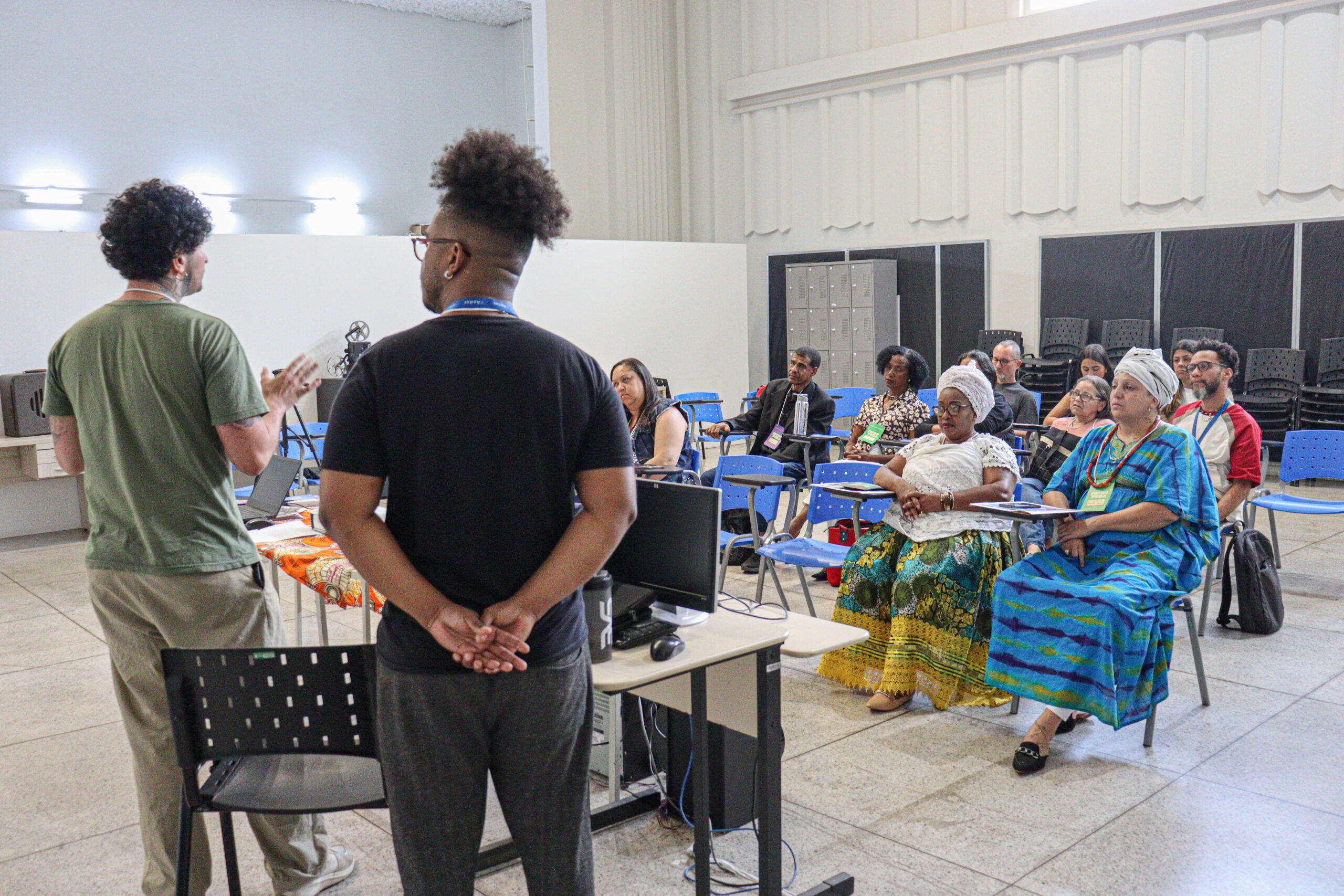 Todos os dias, após as sessões, foram realizados debates que reuniram as pessoas atingidas, realizadoras/es da Mostra, diretoras/es, curadoras/es, educadoras/es, técnicas/os da Aedas e de outras ATIs e pesquisadoras/es, ampliando a reflexão sobre cinema, memória e resistência.