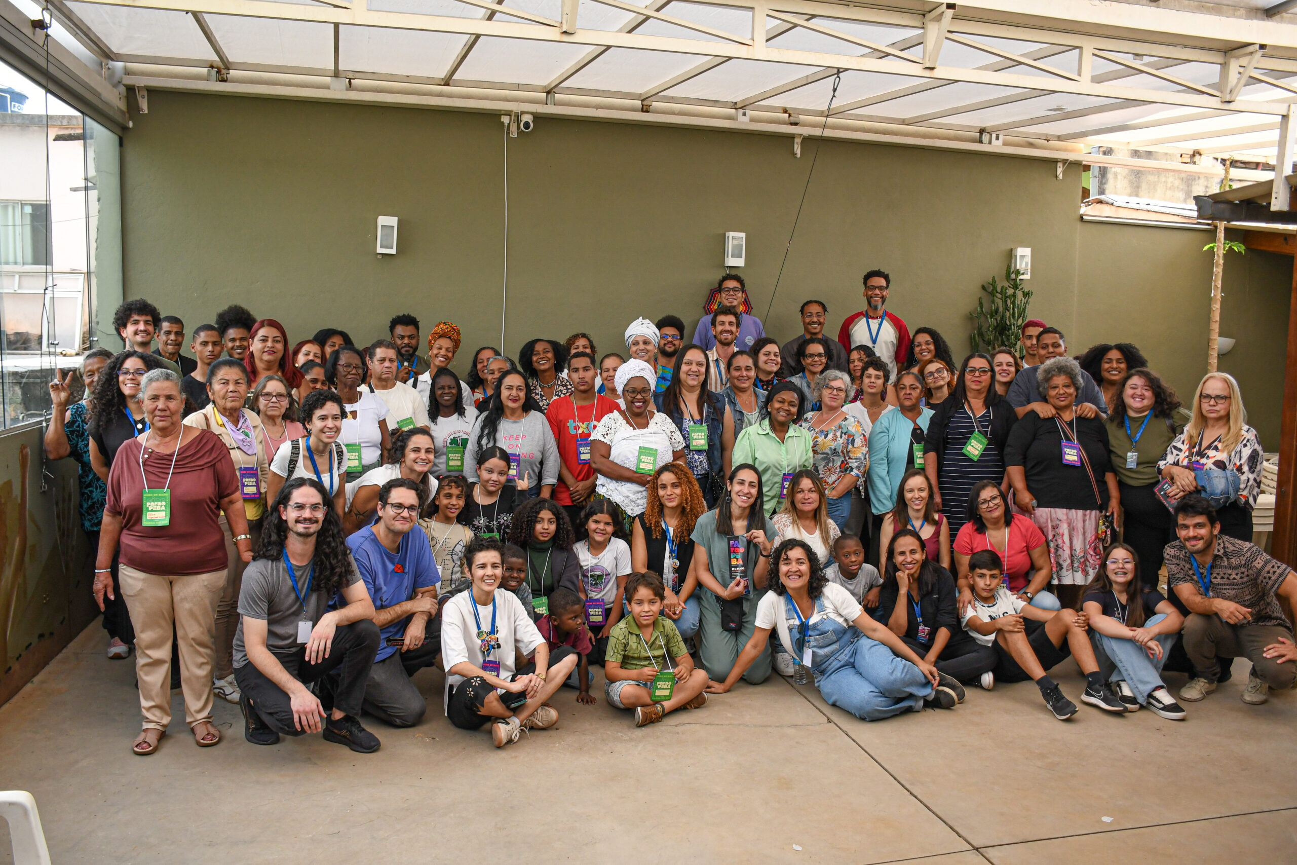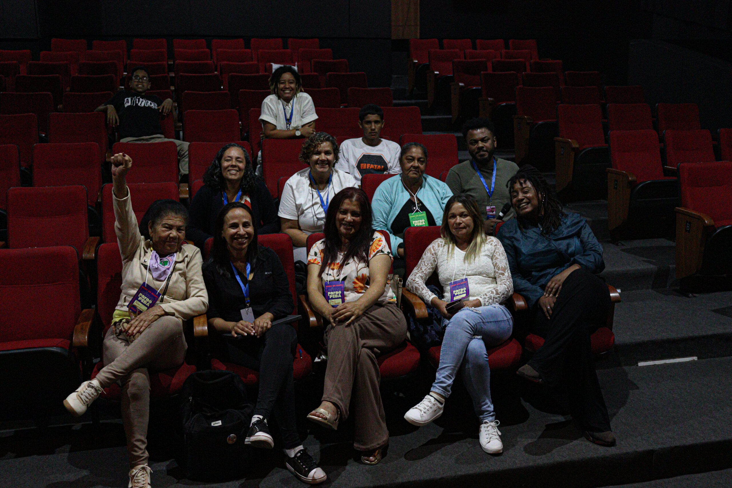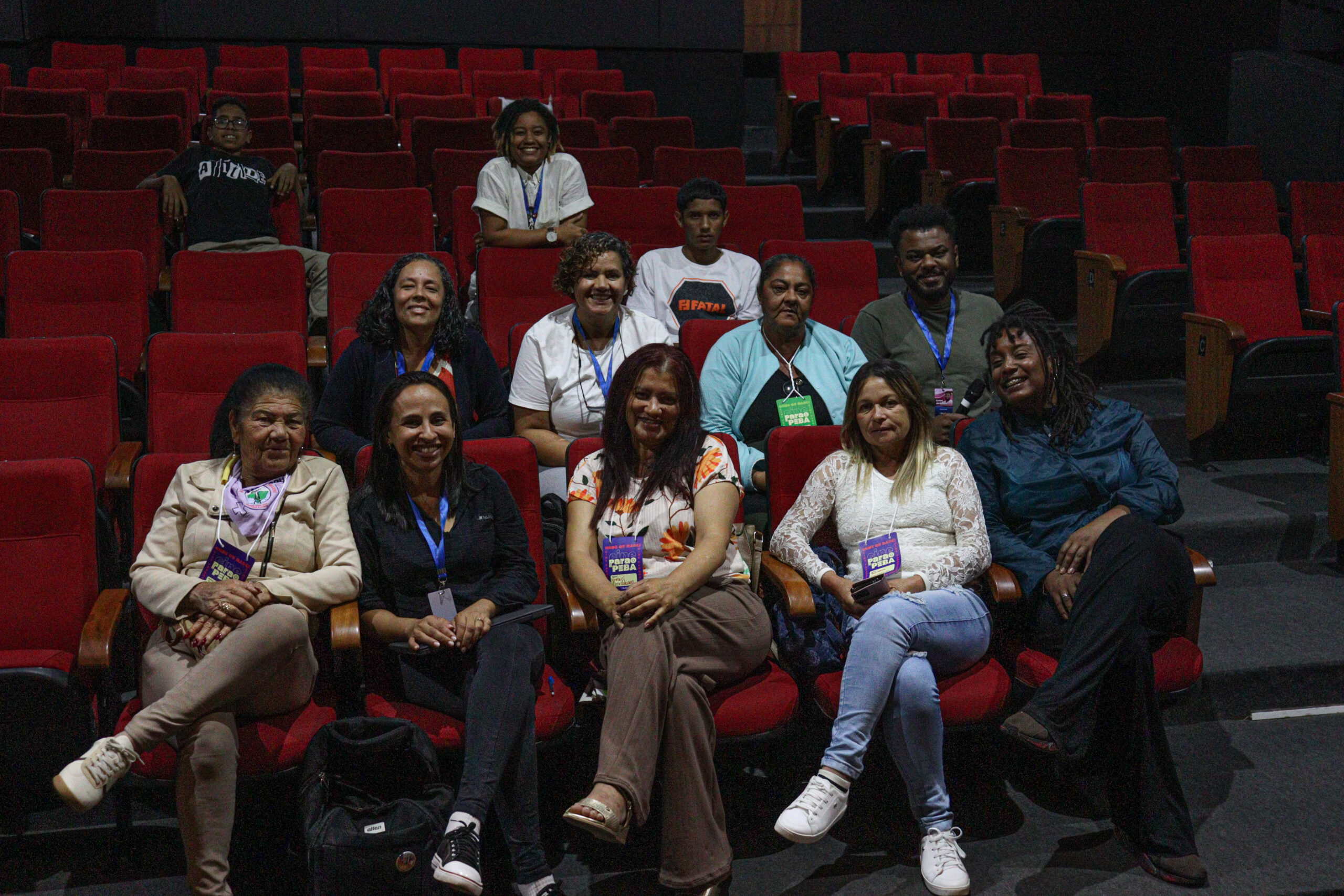 Foto oficial das pessoas atingidas, registrada antes do início das oficinas e da sessão do Filme-Memória | Foto: Felipe Cunha/Aedas