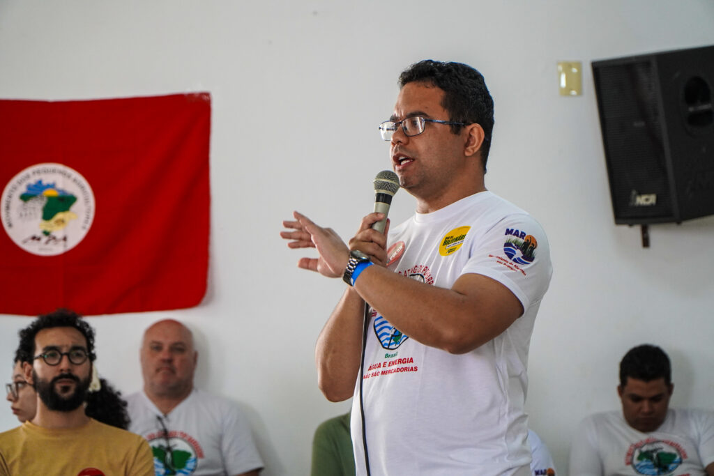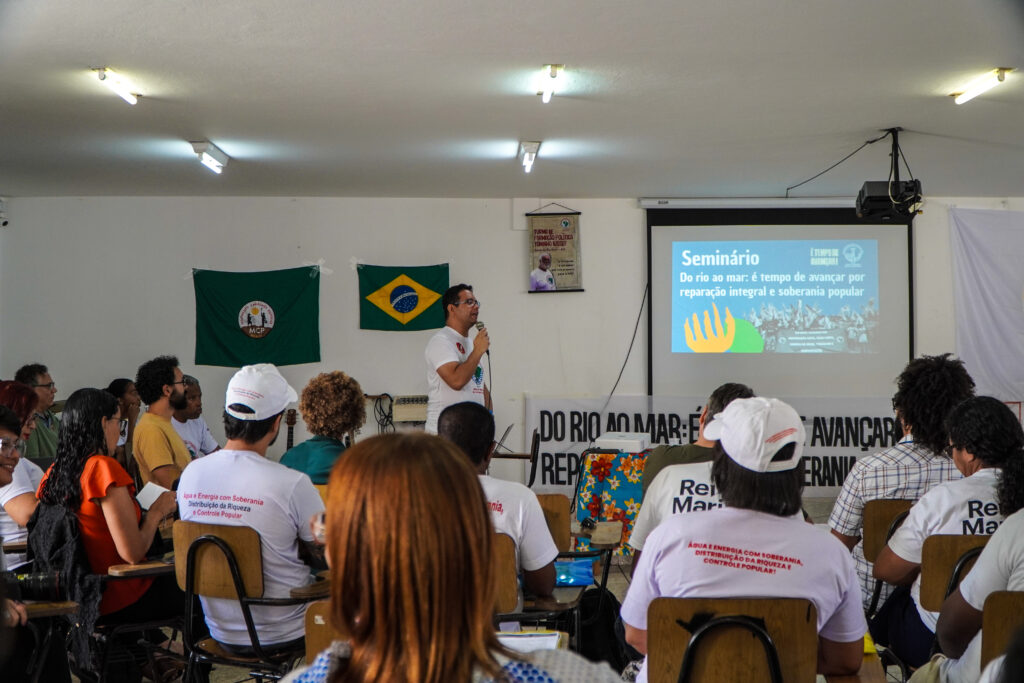 Em sua fala de abertura do Seminário, Thiago Alves, dirigente nacional do MAB, destacou a luta das pessoas atingidas na bacia do rio Doce por reparação integral, as vitórias e conquistas fruto da organização popular e falou sobre o novo momento da reparação na bacia com a chegada do Novo Acordo de Repactuação do Rio Doce.