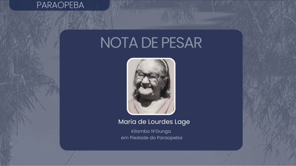 É com profundo pesar que nos solidarizamos com o Kilombo N’Gunga, em Piedade do Paraopeba (MG), pelo falecimento de Maria de Lourdes Lage (1935–2026), liderança quilombola e guardiã mais antiga da comunidade.