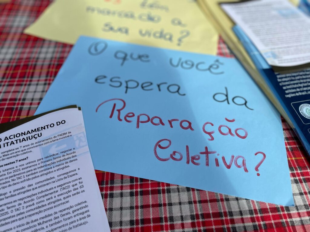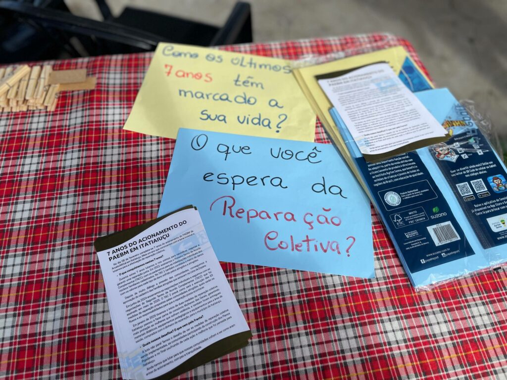 Para marcar os 7 anos de lama invisível e em luta por uma reparação justa, os atingidos e atingidas de Itatiaiuçu realizaram um ato em memória dos 7 anos do acionamento, exigindo respeito às pessoas atingidas e pela implementação das medidas acordadas no Segundo Termo de Acordo Complementar (TAC 2), assinado em maio de 2025, e para mostrar que a luta pela reparação continua nas comunidades.