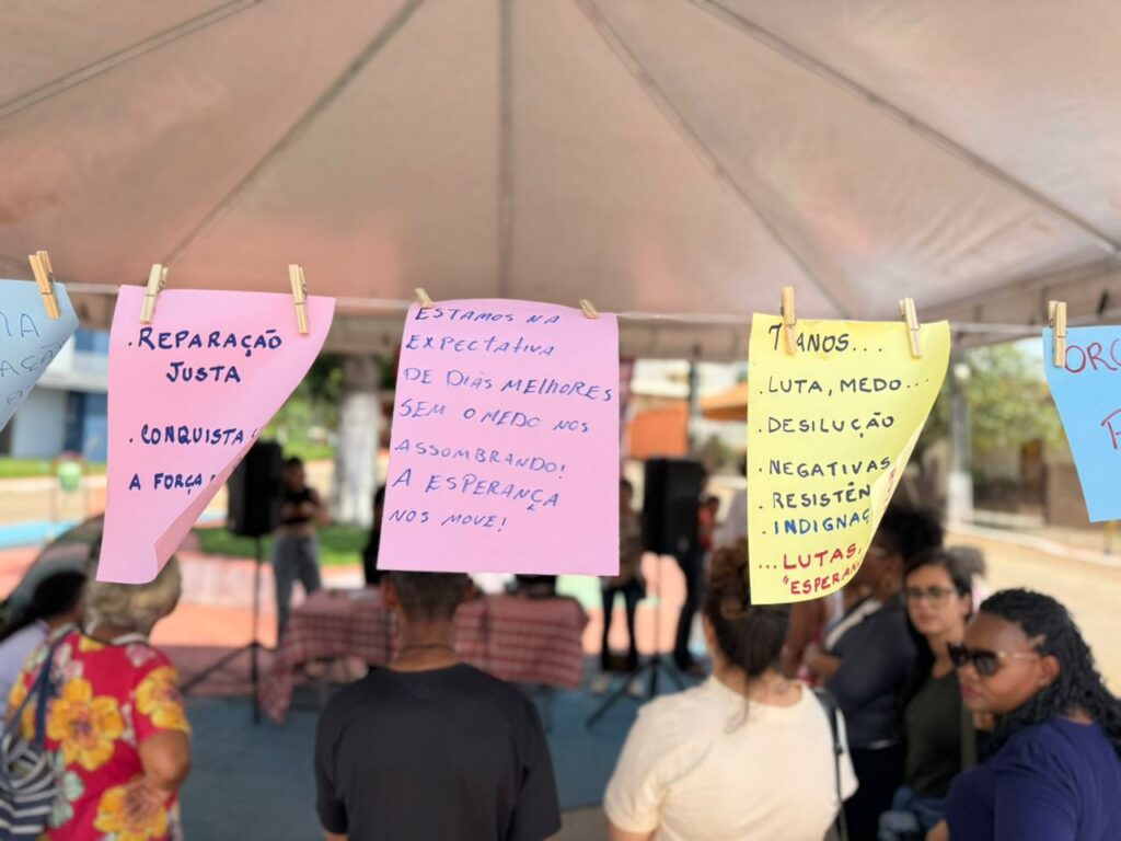 As atingidas e atingidos também deixaram mensagens expressando como foram estes anos nas comunidades, o que esperam para o futuro.  “Espero uma reparação justa para toda comunidade Pinheiros que foi tão sofrida pelo PAEBM. A luta continua”, escreveu o atingido Adilson Alves. “Estamos na expectativa de dias melhores, sem o medo nos assombrando. A esperança nos move”, mensagem da atingida Fabiana Lima.