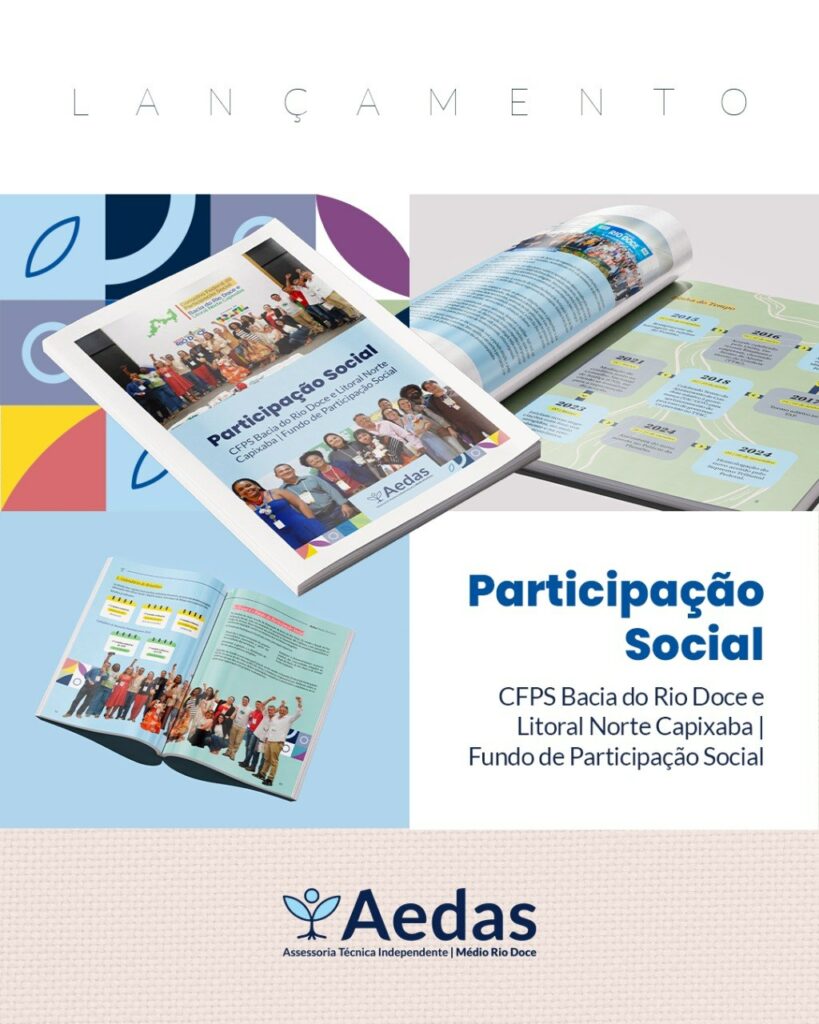 As pessoas atingidas pelo rompimento da barragem de Fundão, agora, contam com um novo instrumento para fortalecer sua participação no processo de reparação: a cartilha informativa sobre o Conselho Federal de Participação Social da Bacia do Rio Doce e Litoral Norte Capixaba (CFPS Rio Doce), produzida pela equipe multidisciplinar da ATI Aedas Médio Rio Doce.