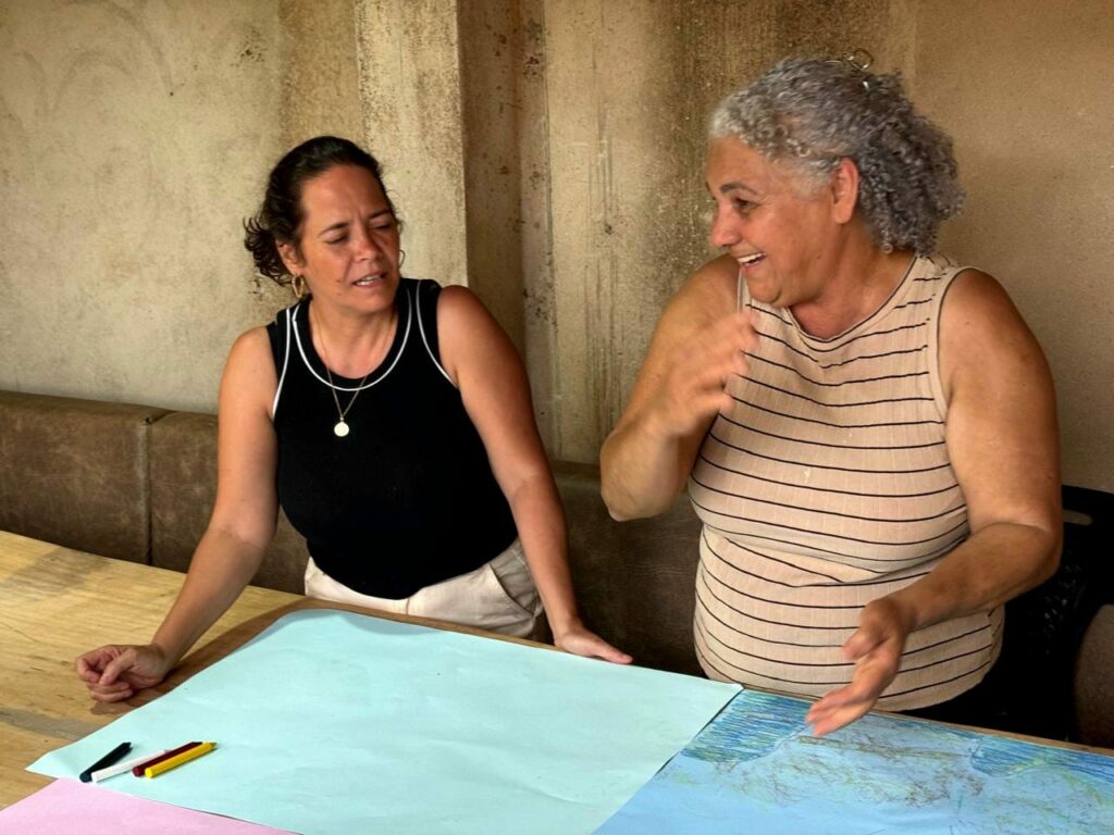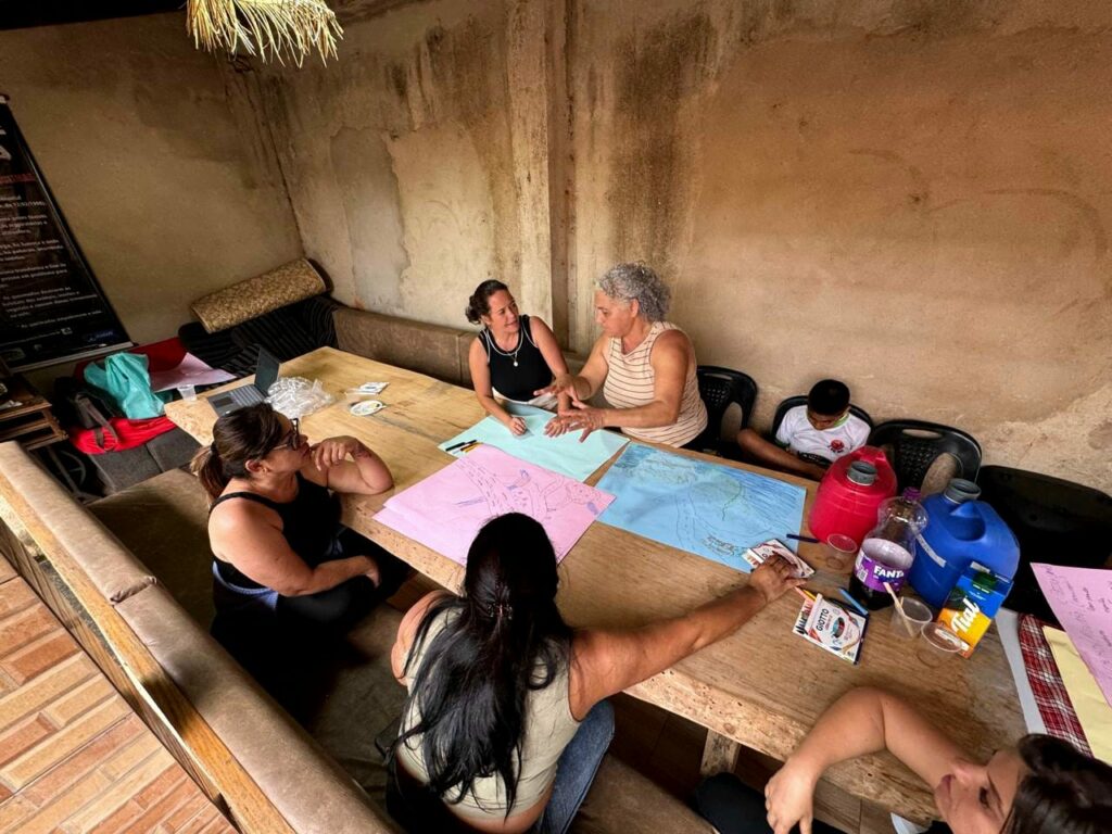 Na segunda parte da formação, os atingidos e atingidas se dividiram em grupos e construíram, coletivamente, uma cartografia social da comunidade de Vieiras para tentar identificar os pontos que reconhecem como sendo de comunidades tradicionais. As pessoas atingidas indicaram pontos de uso comunitário, pontos de turismo, os acessos à comunidade, pontos tradicionais, apontando ainda, plantas medicinais que costumam fazer uso. Além disso, lembraram das figuras de parteiras e benzedeiras, enquanto referências da comunidade. “Vieiras é acolhimento. Aqui, temos natureza, a samambaia, as orquídeas, a embaúba, as pessoas unidas”, apontou a atingida Fabiana Lima.