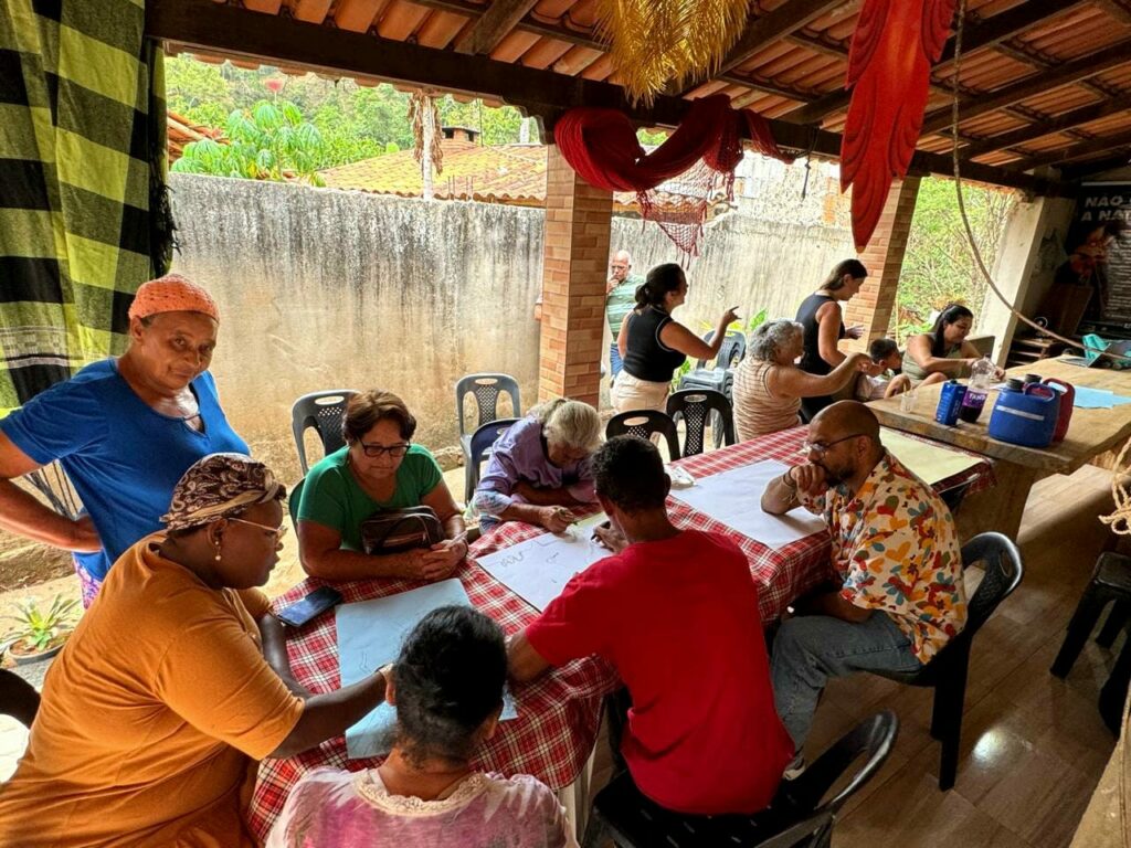 No último sábado (18/10), as pessoas atingidas da comunidade de Vieiras, em Itatiaiuçu, participaram da formação sobre Povos e Comunidades Tradicionais. O encontro foi ministrado pelo professor, historiador e doutorando em História – UNICAMP, Francisco Phelipe Cunha Paz. A formação foi realizada a pedido da comunidade de Vieiras com o objetivo da população entender e conhecer o processo de identificação, reconhecimento e certificação de povos e comunidades tradicionais.