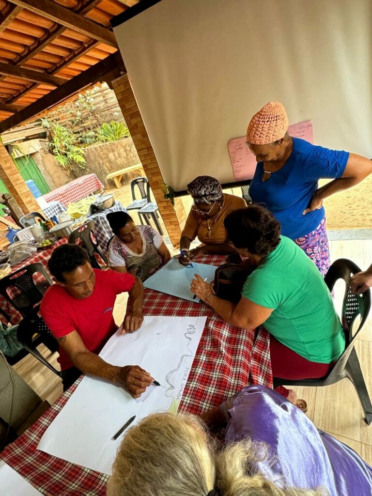 As pessoas atingidas compartilharam como utilizam os espaços da comunidade e refletiram como a Pedra Grande é um símbolo de união e integração entre eles e o território. Ainda explicaram como são as relações e a convivência entre as famílias. Para o atingido José Roberto, mais conhecido como Zezé, “a comunidade de Vieiras é complexa e tem suas subdivisões, como as áreas de Veloso, Cascalho, Samambaia, Mourão e Pedra Grande. Para mim, a comunidade de Vieiras é veias de águas e plantações de sobrevivência de famílias, vejo o Mourão como nascente, como vida”.