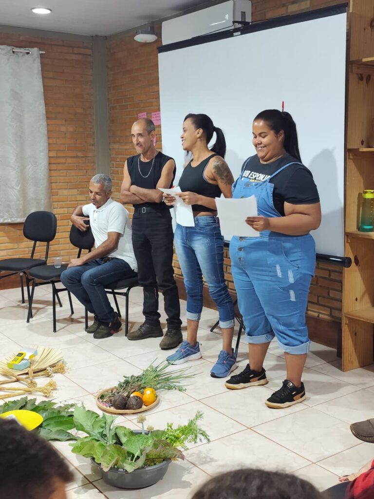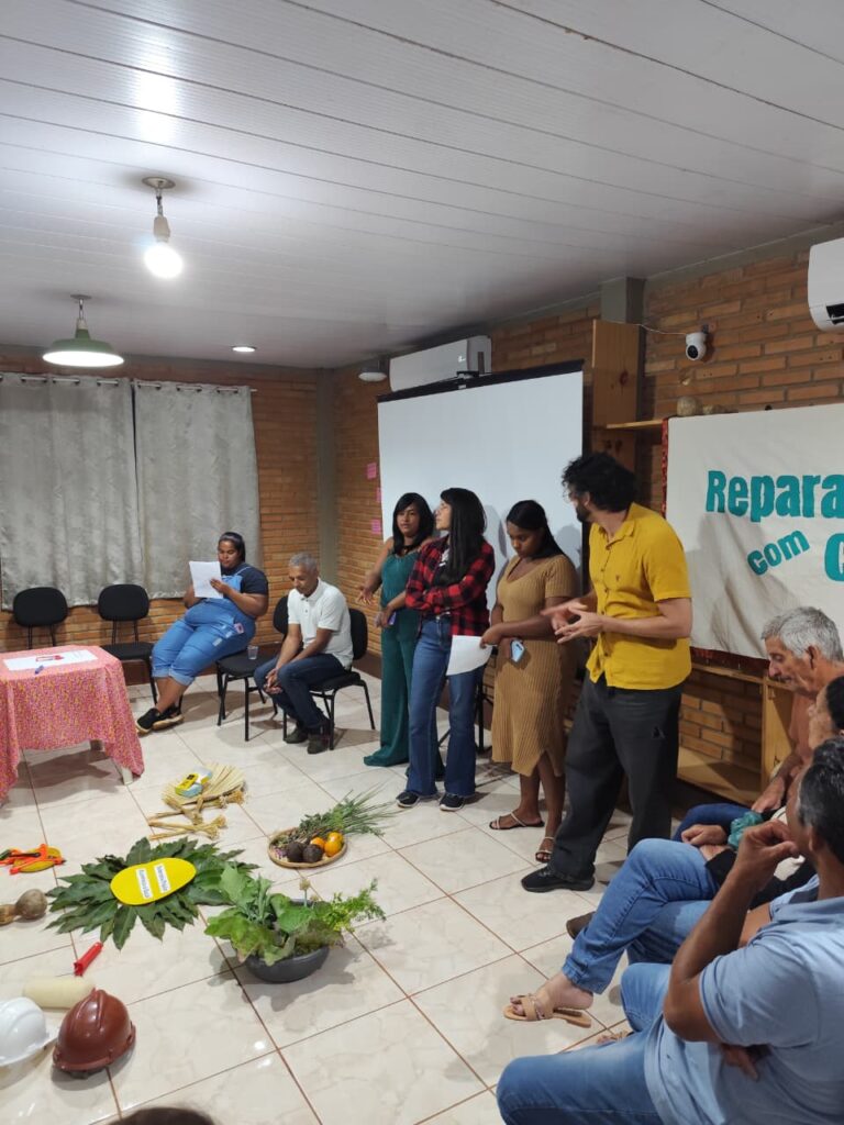 Ao final, as pessoas atingidas apresentaram suas criações e conversaram sobre as possibilidades de conexão entre cada empreendimento criado.
