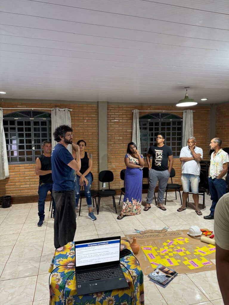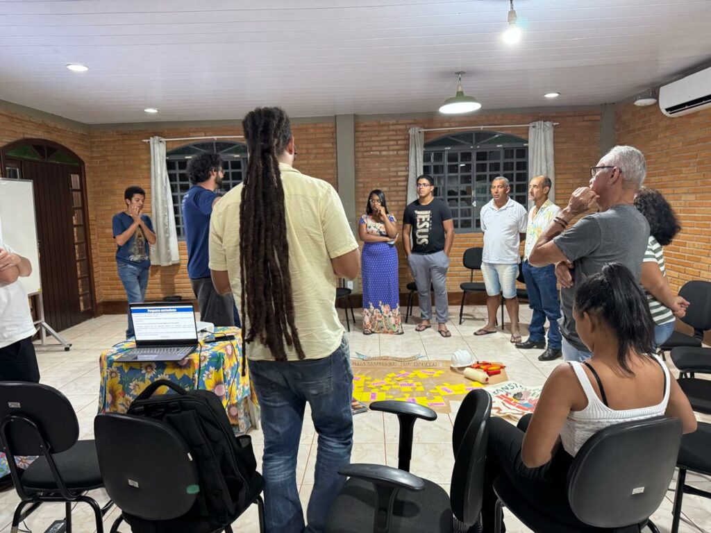 No primeiro encontro com o GT, foram apresentados os conceitos de economia solidária, economia convencional e projeto social. Entretanto, a reunião não foi apenas para exposição teórica. Buscando consolidar e complementar as informações trazidas, as atingidas e os atingidos presentes foram convidados a participar de um exercício prático: a criação de diferentes modelos de negócios. Assim, foram organizados 3 grupos e cada um ficou com o desafio de viabilizar um tipo de negócio.