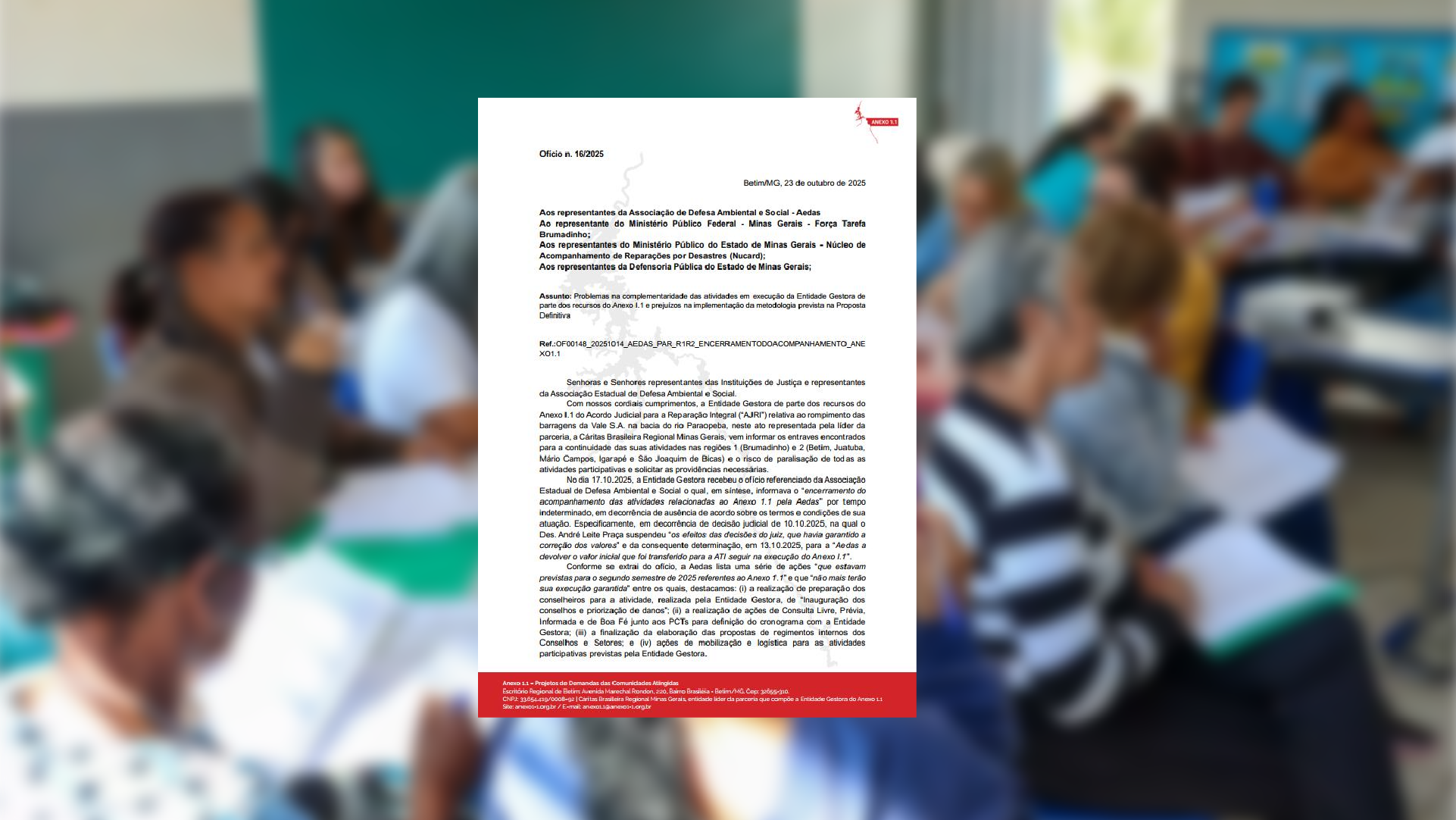 Neste 5 de Junho, se encerra o prazo para submissão dos projetos construídos pelas comunidades atingidas da região 2 em conjunto com a Associação Estadual de Defesa Ambiental e Social (Aedas), Assessoria Técnica Independente (ATI) que assessora as pessoas atingidas dos municípios atingidos de Brumadinho (região 1), Betim, Igarapé, Juatuba, Mário Campos e São Joaquim de Bicas (região 2). Ao todo, foram 212 projetos da região 2 enviados aos compromitentes do acordo judicial assinado entre Vale, o Governo do Estado e as Instituições de Justiça (IJs).
