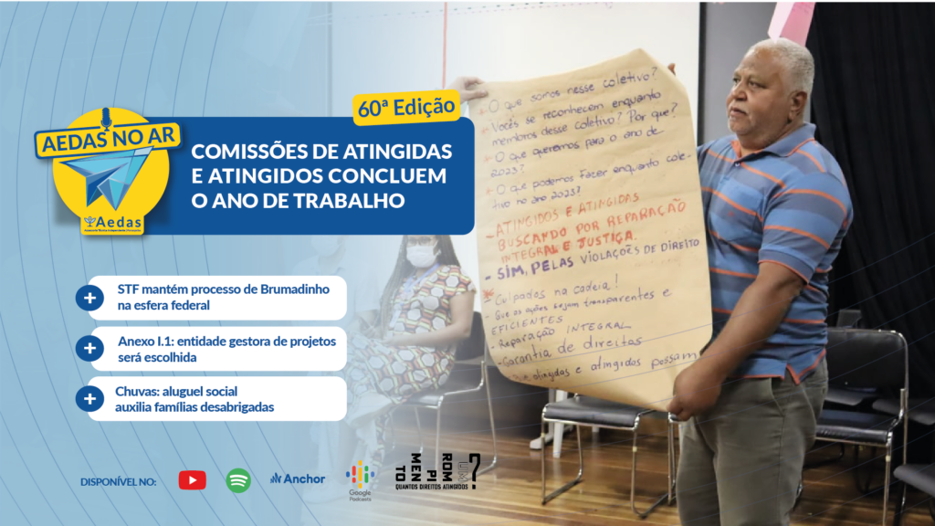 Na edição 60 do Aedas no Ar, e última do ano 2022, você fica sabendo como foi o encontro de conclusão do ano de trabalho das Comissões de Atingidas e Atingidos. E mais: