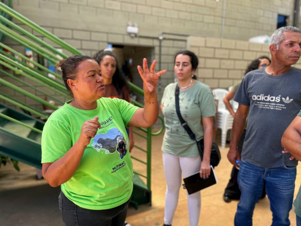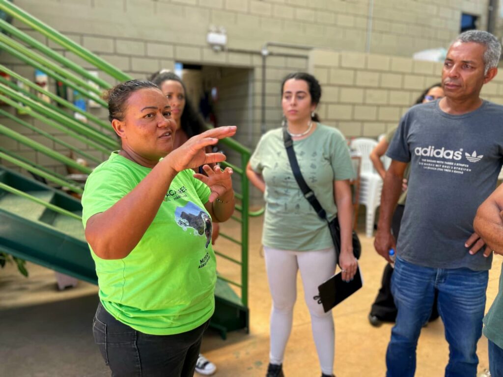 A catadora e a atual presidente da Acamares, Marli Beraldo, foi a anfitriã na visita e conversou com às pessoas atingidas sobre o funcionamento e o trabalho da Associação. Além disso, Marli apresentou os dois galpões da Acamares: o de Sarzedo e o de Mario Campos. A Acamares foi fundada em 2013 e desde então foram diversos desafios, mas também muitas alegrias e vitórias. “Hoje a Acamares é um sucesso devido as vivências e as trocas que tivemos. Nós pisamos no chão, conhecemos as realidades e sabemos ouvir as pessoas. Agora estamos mais organizados, com um trabalho mais estruturado, mas tem desafios, é difícil, mas vale a pena”.