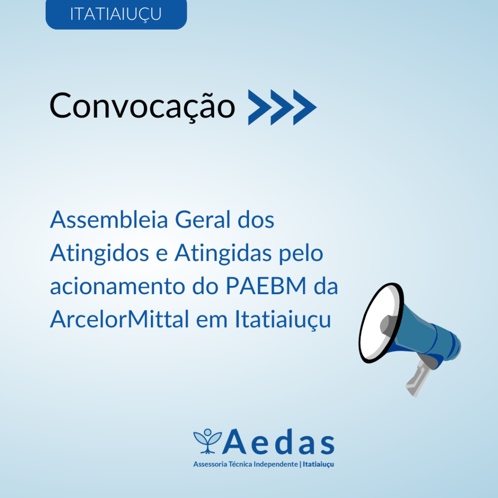Itatiaiuçu CONVOCAÇÃO: Assembleia Geral dos Atingidos(as) de Itatiaiuçu pelo acionamento do PAEBM da ArcelorMittal em Itatiaiuçu 24 de agosto de 2023