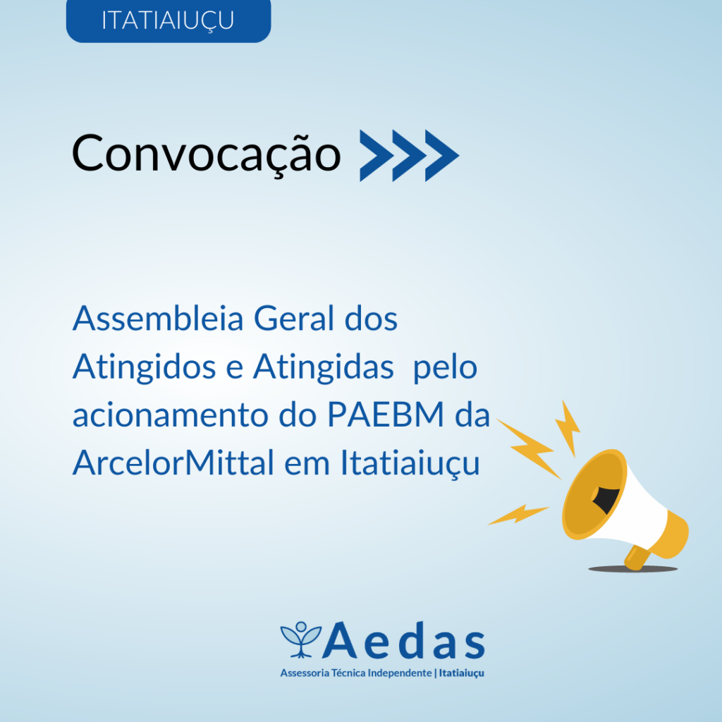 CONVOCAÇÃO: Assembleia Geral dos Atingidos(as) de Itatiaiuçu pelo acionamento do PAEBM da ArcelorMittal em Itatiaiuçu