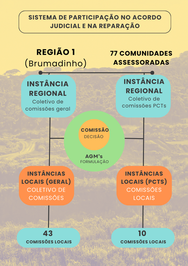 São grupos de pessoas, famílias e territórios atingidos pelo desastre-crime da Vale em Brumadinho. Cada comunidade tem seus representantes nas comissões locais que integram o Sistema de Participação.