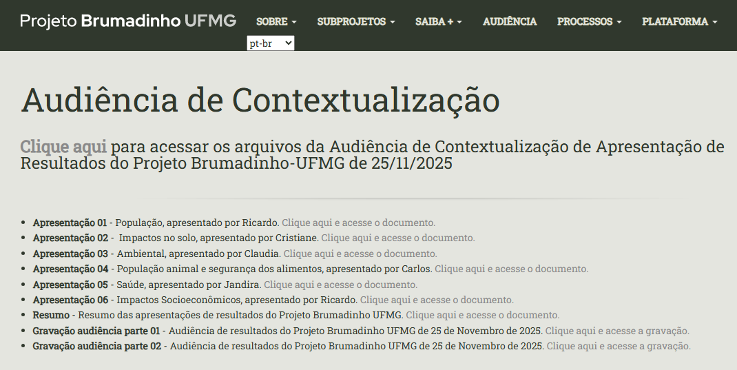 Na última terça, dia 25 de novembro, ocorreu uma Audiência de Contextualização no Tribunal de Justiça de Minas Gerais (TJMG), na qual pesquisadores da Universidade Federal de Minas Gerais (UFMG) apresentaram os resultados preliminares dos estudos conduzidos pelo Comitê Técnico-Científico (CTC) do Projeto Brumadinho.