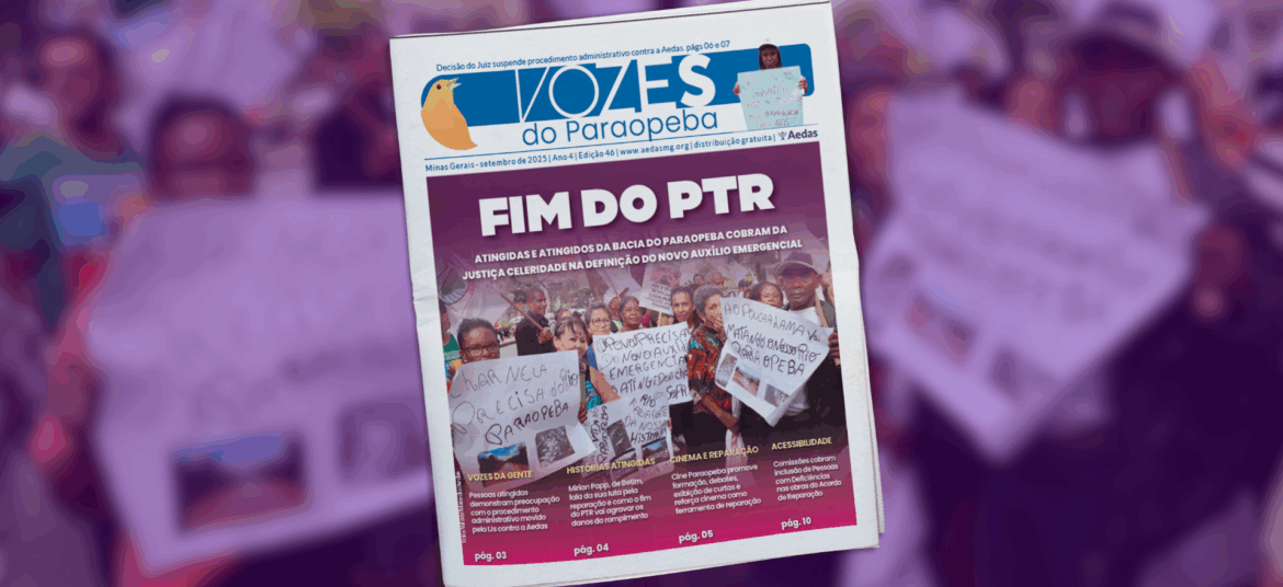 JORNAL. Nesta edição, você confere também a decisão do juiz que suspendeu o procedimento administrativo aberto contra a Aedas. JUSTIÇA NÃO SE NEGOCIA Enquanto a reparação e a justiça não acontecem, nenhum responsável da Vale foi condenado, a reparação socioambiental segue parada, a execução do Anexo I.1 atrasou 04 anos para iniciar e as Instituições … Continue lendo Vozes do Paraopeba – 46ª edição: Fim do PTR – Atingidas e atingidos da Bacia do Paraopeba cobram da justiça celeridade na definição do novo auxílio emergencial
